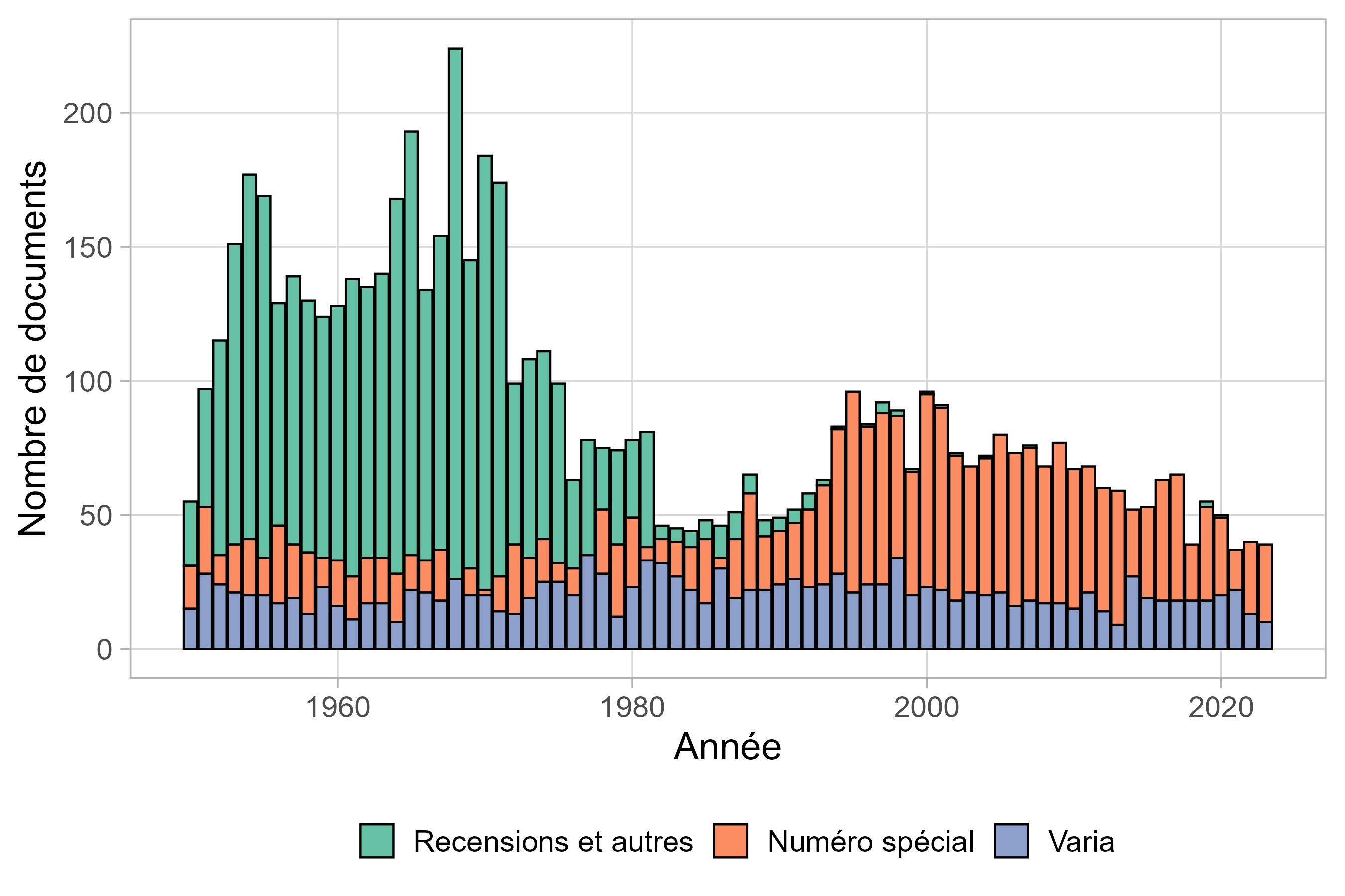 Figure 1. Distribution des documents dans la Revue économique (1950-2023)