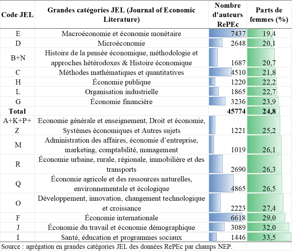En France : un pipeline de jeunes économistes susceptible de creuser les disparités par sous-champs